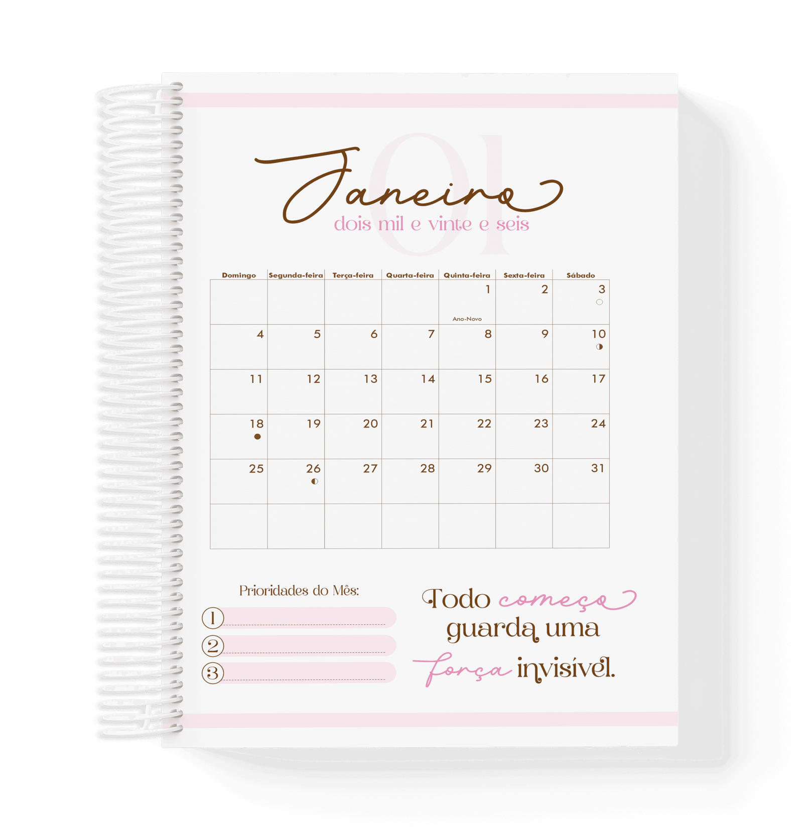 Cada mês contem frases motivacionais para você se motivar e inspirar;
