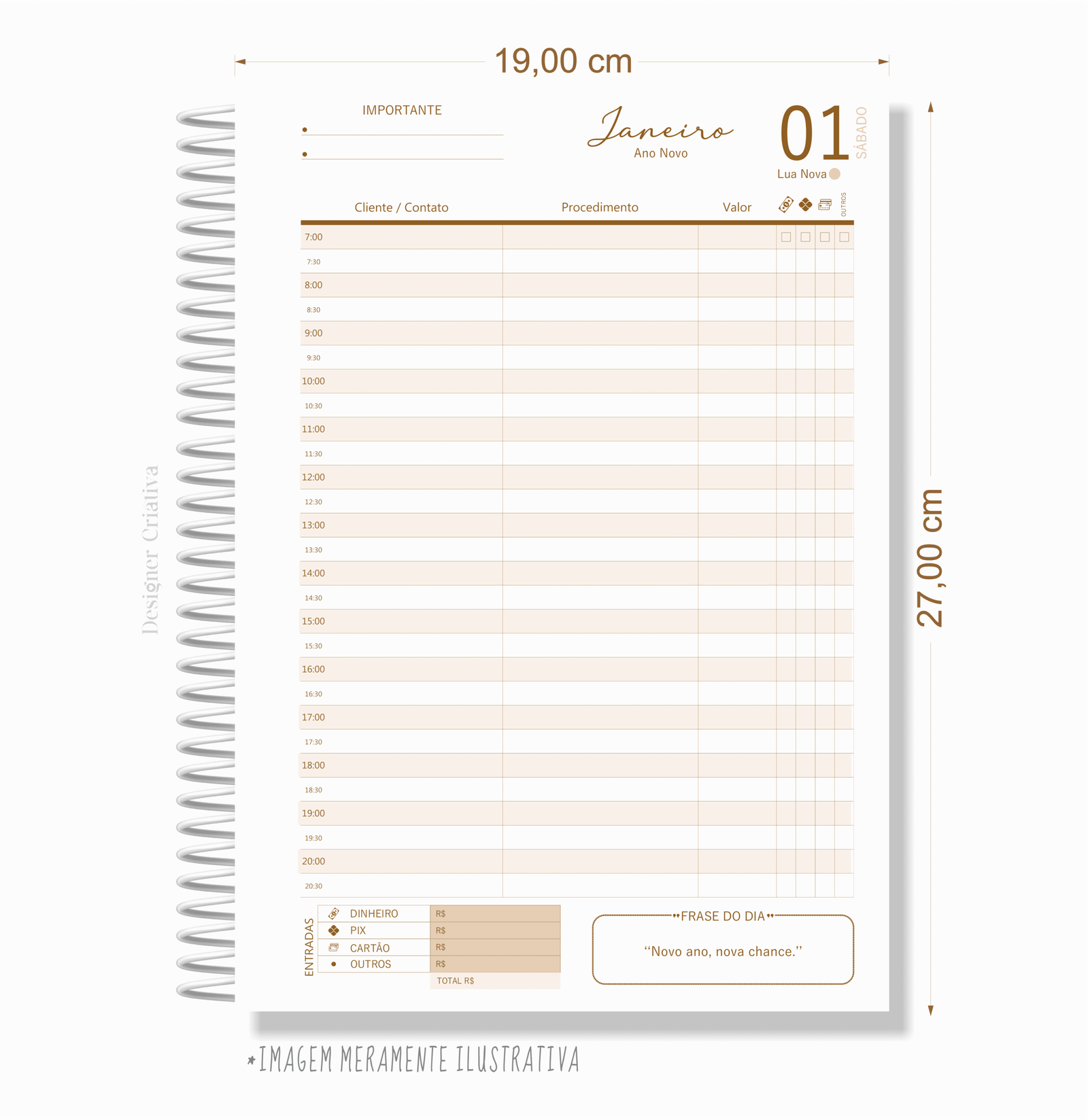 Ideal para a profissional que procura uma agenda para seus agendamentos com layout pensando no seu dia a dia de atendimentos sem perder a delicadeza.